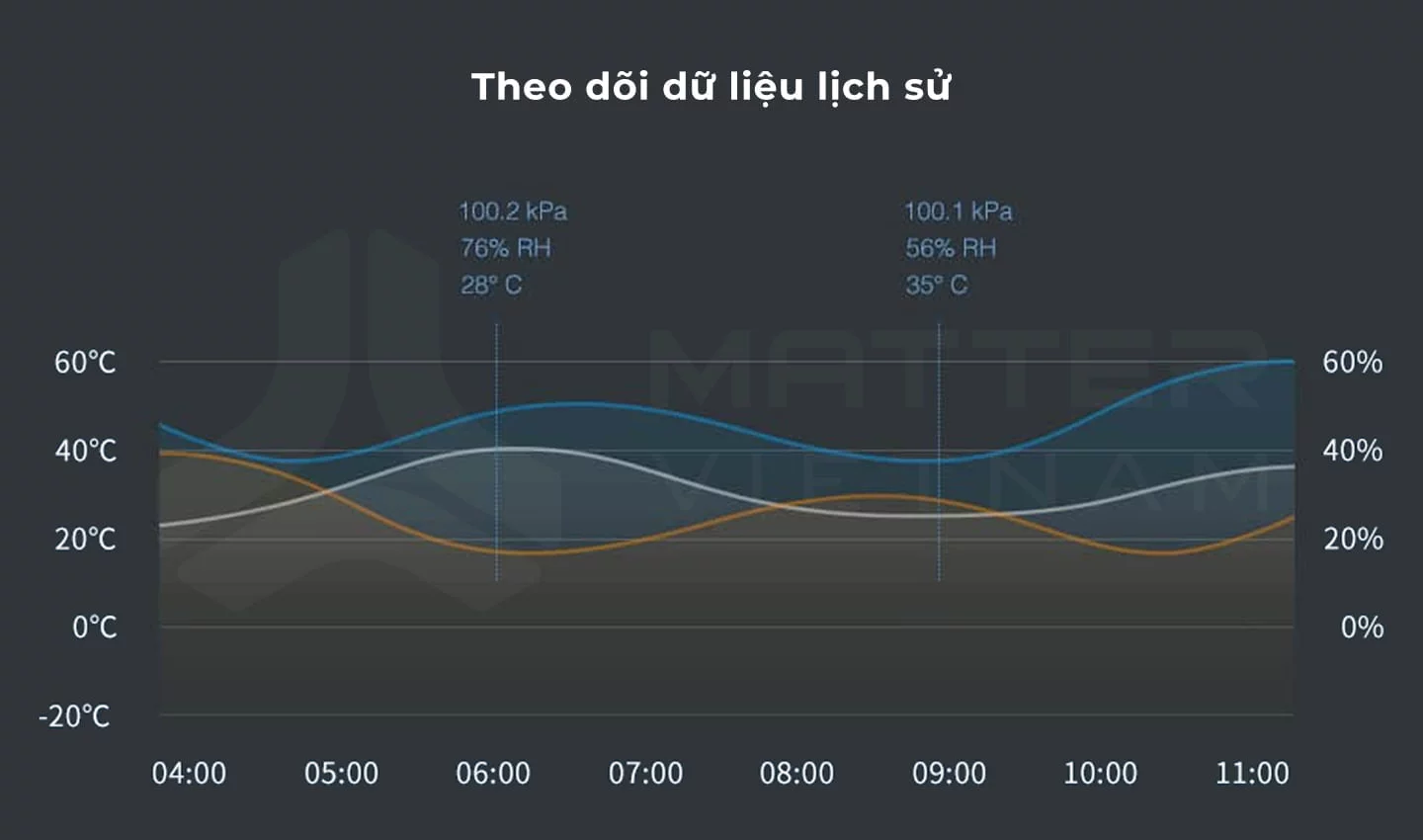 - Có thể yêu cầu và xuất báo cáo, hiểm thị nhiệt độ, độ ẩm